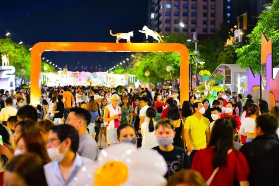 | A large number of local people and visitors attend the opening ceremony of Nguyen Hue Flower Street. (Photo: SGGP) |