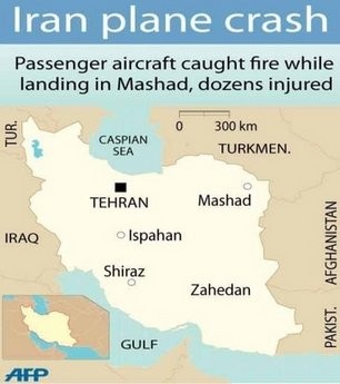 "The plane caught fire while landing," state television quoted Javad Erfanian, head of disaster management of Khorasan Razavi province of which Mashhad is the capital, as saying.