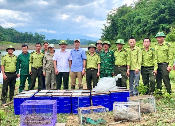 The rare animals including 11 pig-tailed macaques, 40 big-headed turtles and four-eyed turtles, two Python molurus, two king cobras and one single-eyed cobra are on the list of endangered, precious and rare species of the wild animals under the group IB, IIB prioritized protection and conservation, received from local authorities and voluntarily handed over by the people.