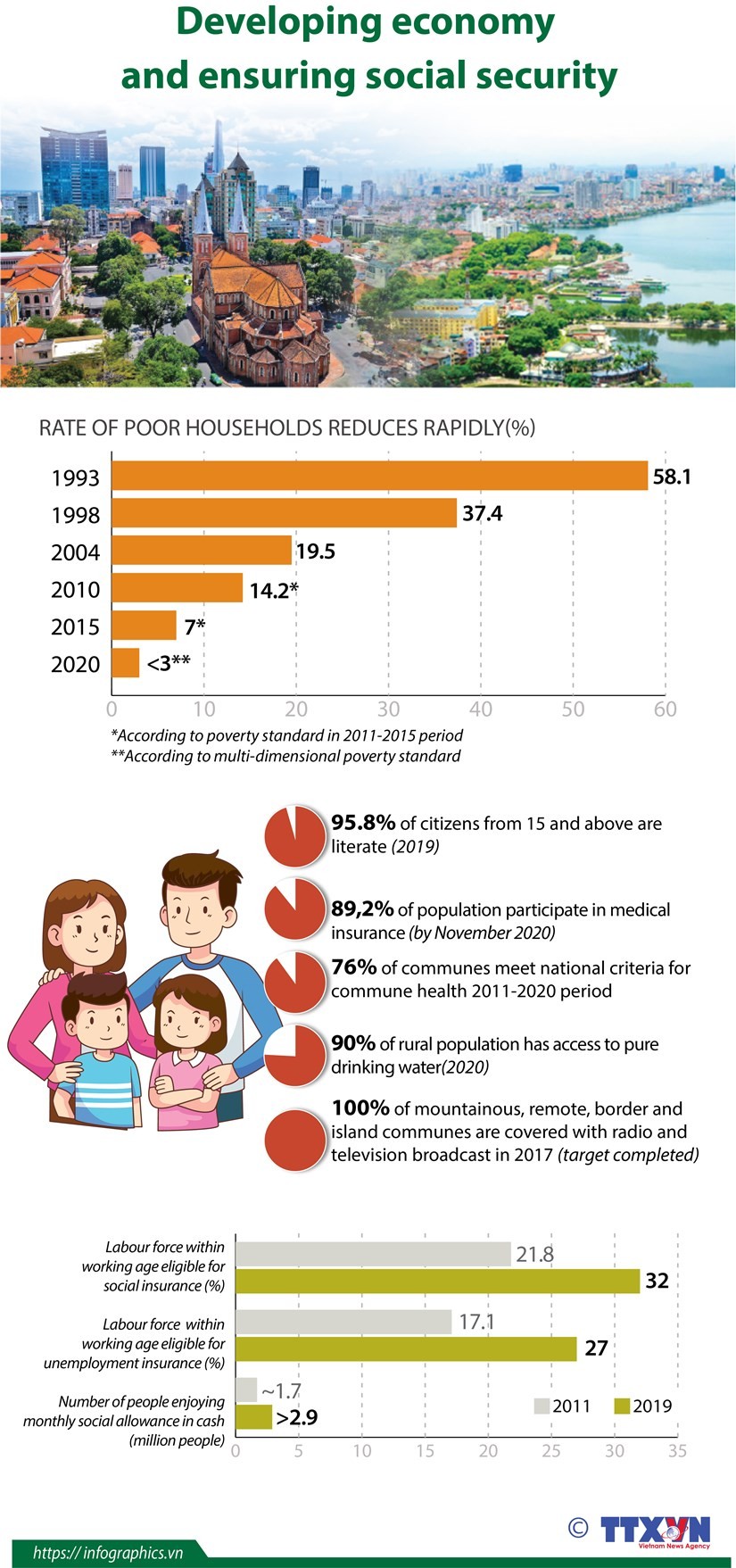 After 35 years of ‘doi moi’, especially during 10 years of the implementation of the socio-economic development strategy for 2011-2020, Vietnam has gained important achievements in economic growth and ensuring social security.