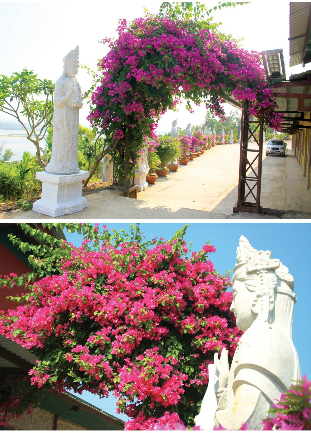 A lot of Bougainvillea plants are grown at Minh Duc Pagoda on Thien Ma Mountain bordering Tinh Long and Tinh Khe communes in Quang Ngai City. The pagoda attracts visitors with five colorful bougainvillea flower gates.