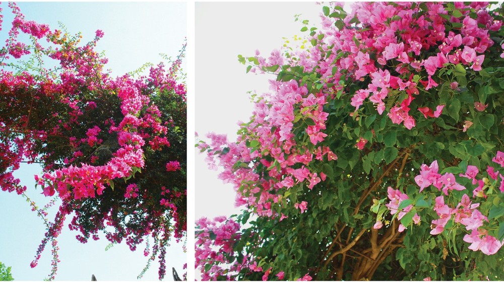 Bougainvillea called hoa Giay (paper flower) blooms all year. Especially, they are in blossom profusely and relentlessly throughout summer.