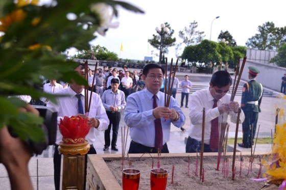 Member of Politburo, Deputy Prime Minister of Vietnam Vuong Dinh Hue yesterday led a central delegation to lay wreath, burn incense to express their deep gratitude to heroic martyrs at the Road No.9 National Martyrs' Cemetery and Truong Son National Martyrs' Cemetery in the central province of Quang Tri on the occasion of the 70th anniversary of