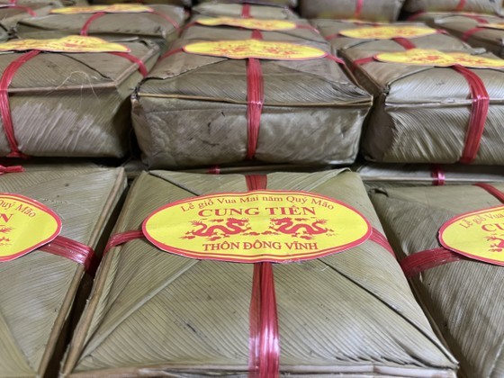 | The local people of Mai Phu Commune offered more than 1,800 Chung cakes (square glutinous rice cakes) to King Mai Hac De. (Photo: SGGP) |