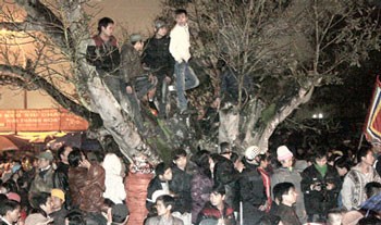 One of the most anticipated activities is the seal procession ritual in the early morning hours on February 6. Thousands of people stand outside the fence to wait for the seals at the Tran Temple. Though guards try to keep order, many people try to climb the fence to get into the temple and struggle to get the seals.