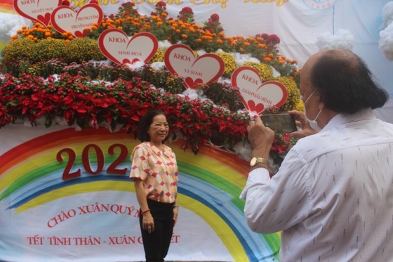 | Doctors and their relatives take pictures in flower street. (Photo: SGGP) |