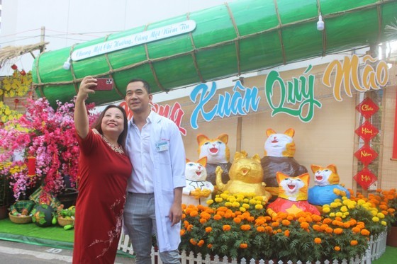 | Patients and their relatives take photos at flower street in the hospital. (Photo: SGGP) |