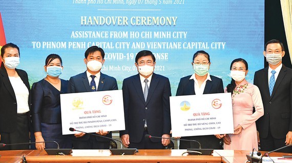 On the occasion, Chairman Phong announced the urgent assistance from Ho Chi Minh City to Vientiane and Phnom Penh to fight the pandemic with US$50,000 for each locality.