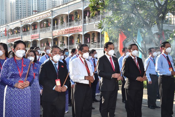 Before opening ceremony of the third Party Committee Congress of the Ho Chi Minh City People-Politic-Party Bloc in term of 2020-2025, members of the congress offered flowers and incenses in front of President Ho Chi Minh’s Monument inside the headquarters of HCMC High Command this morning.