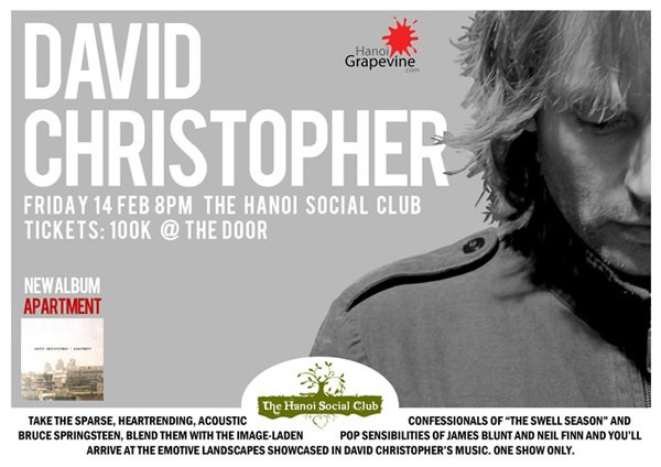 British musician David Christopher will perform at Hanoi Social Club on February 14.