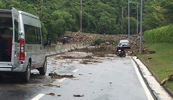 A landslide blocks a street heading to Cam ranh Airport