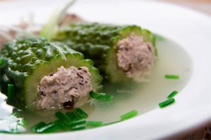 These days, people have made various kinds of dish from this bitter melon, such as soup of bitter melon with cow meat, or with fresh shrimp, etc…Yet, the flavor of the dishes from bitter melon cooked by my mother is something that I can never forget.