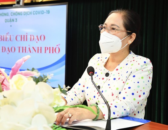 The Chairwoman gave positive comments on innovative measures of District 3 in the Covid-19 fight, such as the model ‘Each family with an F0 is considered one mobile hospital bed, each neighborhood one department of Field Hospital No.06’, the mobile clinic model with temporary emergency beds, the first neighborhood checkpoint for green area in HCMC (in Ward 4), the liquid oxygen delivery station.