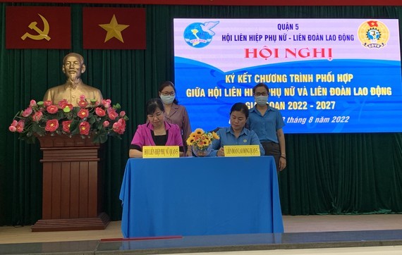 The Women's Union of District 5 in Ho Chi Minh City, in collaboration with the District Confederation of Labor, held a signing ceremony on the coordination to support female workers in the 2022 – 2027 period on August 3.