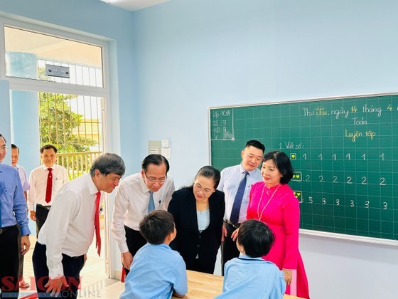 Right after the ceremony, Chairwoman of the People's Council of Ho Chi Minh City Nguyen Thi Le and delegates visited each classroom and talked with teachers and pupils.