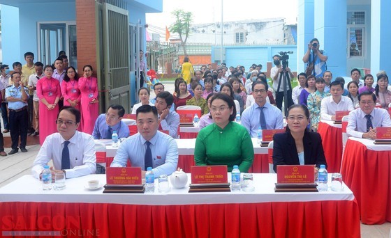 Chairwoman of the People's Council of Ho Chi Minh City Nguyen Thi Le and delegates join an inauguration ceremony for Hy Vong (Hope) School in District 6 this morning. |