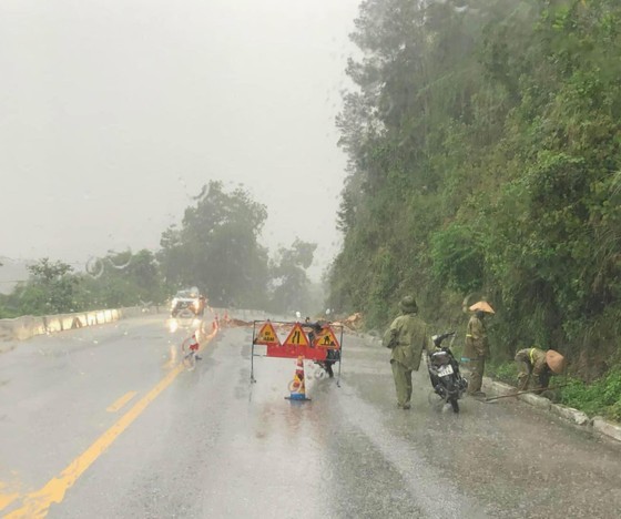 A section of hundreds of meters of the National Road 1A running through Nghen town in Can Loc District has been submerged in water. The local functional forces issued a landslide warning and controlled the traffic to ensure the safety of all road users.
