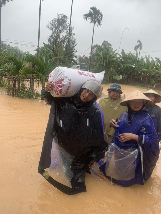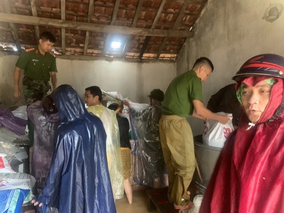| Military officers give support to flood-affected people in Can Loc District. (Photo: SGGP) |