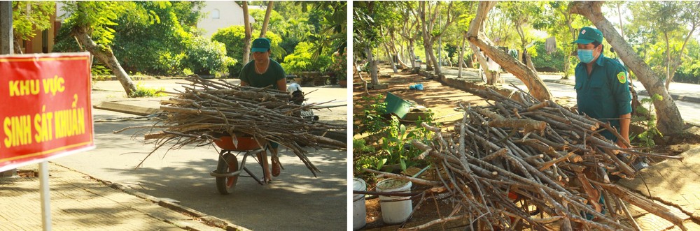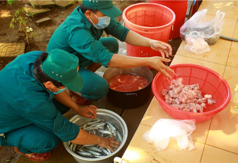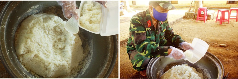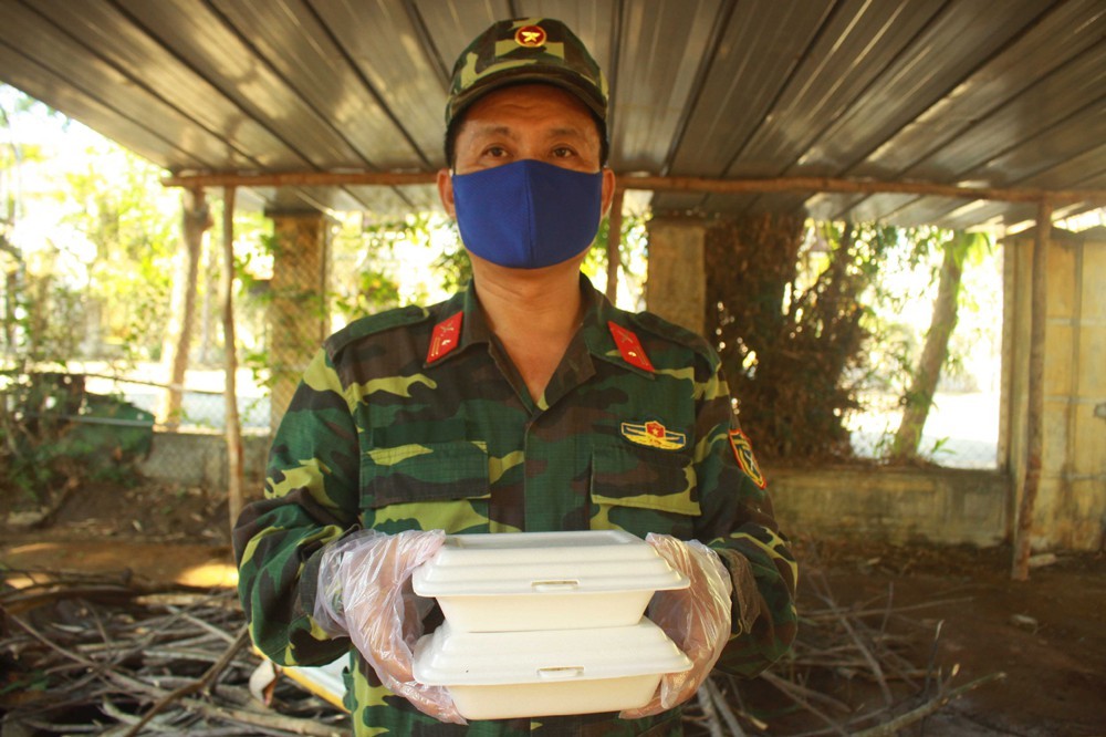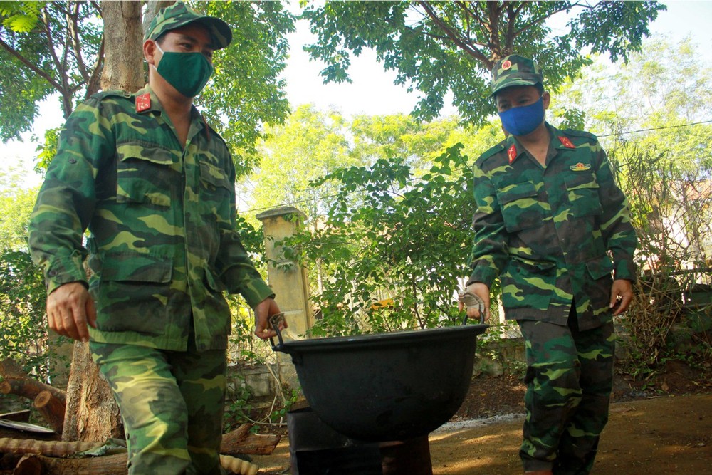 Commanding officers and soldiers take turns cooking, guarding camps and helping around the isolated facility. To support more than 130 people at Binh Son District Clinic, soldiers must collect fire woods, light them in a pit, wash the rice and cook it in huge pots that require 2 carriers.