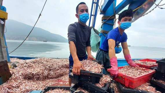 According to the Management Board of Fishing Ports of Ha Tinh Province, ten large capacity boats docked at Cua Sot fishing port in Thach Kim Commune, Loc Ha District with a total fishing yield of around 80 to 100 tons of silver-stripe and broad-stripe anchovies and some boats even caught ten to 18 tons of fishes.