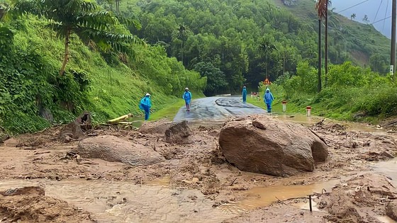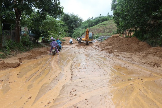 The Department of Transport of Quang Ngai Province informed that the whole province recorded 70 landslide locations with soil and rock falling onto the road surface, filling drainage ditches on National Highways 24, 24B and 24C along with provincial roads.