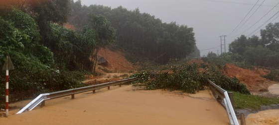 According to the Office of the Quang Ngai Provincial Natural Disaster Prevention and Control Steering Committee, torrential rains triggered landslides in many sections on National Highways 24, 24B and 24C, with a huge amount of soil and rock falls, inundated locations and uprooted trees.