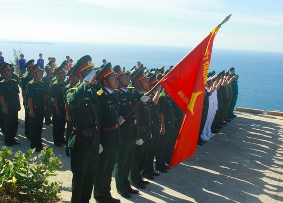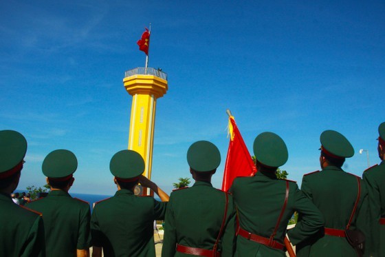 Amid the solemn atmosphere, soldiers and border guards hoisted the national flag on Thoi Loi mountain flagpole at an altitude of 170 meter above sea level.