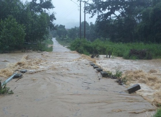 In Binh Dinh, rain and flooding damaged a section through Doi Stream in Vinh Kim Commune, Vinh Thanh District, resulting in traffic interruption and isolating about 200 people living in nearby mountainous areas.