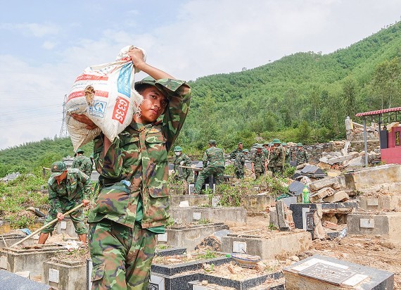 Deputy Chairman of the People’s Committee of Hoa Vang District and Head of the Steering Committee for handling landslides at Hoa Son Cemetery Nguyen Thuc Dung said that more than 800 soldiers of Division 315 under the fifth Military Zone, Regiment 971 of Military Command of Da Nang City and other forces have tried to help people overcome landslide consequences at Hoa Son Cemetery.