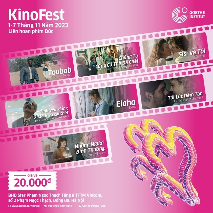 The movies including We Might as Well Be Dead; Sisi and I; Liebe, D-Mark, Tod; Elaha; Till the End of the Night; The Ordinaries are screened in German with Vietnamese and English subtitles.
