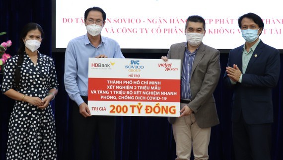 Speaking at the ceremony, Standing Deputy Chairman of the Vietnam Fatherland Front Committee of Ho Chi Minh City Nguyen Thanh Trung expressed his thankfulness to Sovico Holdings, Ho Chi Minh Development Joint Stock Commercial Bank (HDBank) and Vietjet Aviation Joint Stock Company for joining hands with the city in Covid-19 pandemic prevention and control.