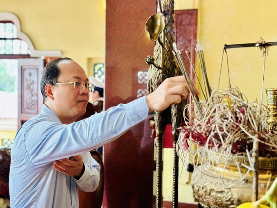 | Head of the Organization Commission of the HCMC Party Committee Nguyen Phuoc Loc offers incense to heroic martyrs. (Photo: SGGP) |