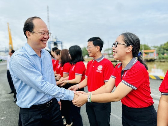 | Vice Secretary of the HCMC Party Committee Nguyen Ho Hai wishes delegates to have a good trip. (Photo: SGGP) |