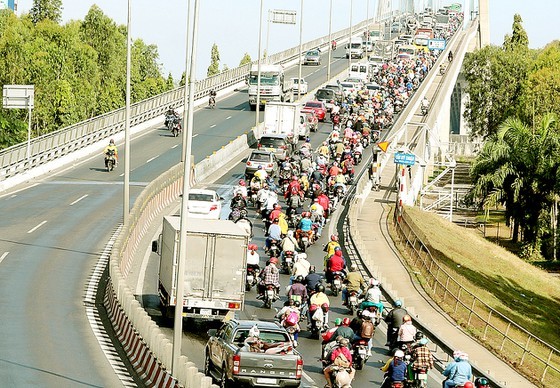 A similar situation was seen in the Mekong Delta yesterday. In Vinh Long Province, hundreds of motorcycles, private cars, coaches, trucks were slowly heading to HCMC in lines.