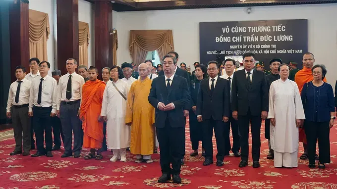 "Comrade Tran Duc Luong made significant contributions and great efforts to the revolutionary cause, the reunification of the country and the building and defense of the Fatherland," Secretary Nguyen Van Nen wrote in the funeral book.