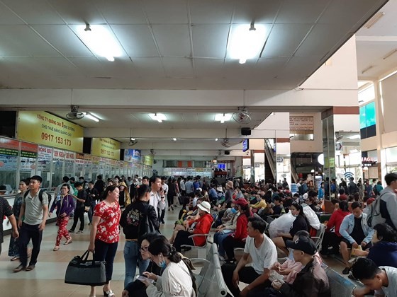 From 5 a.m. on, the Mien Tay Coach station was crowded with passengers overloading ticket counters. Traffic was very slow in surrounding areas but congestion did not occur.
