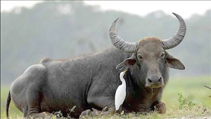 Besides imparting industrious ideals, the buffalo is sometimes invoked to set a romantic scene: