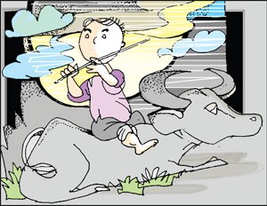 Furious, God exiled the angel by turning him into a buffalo and sending him to Vietnam to eat up all the grass he had inadvertently grown and toil in the fields to atone for his mistake.