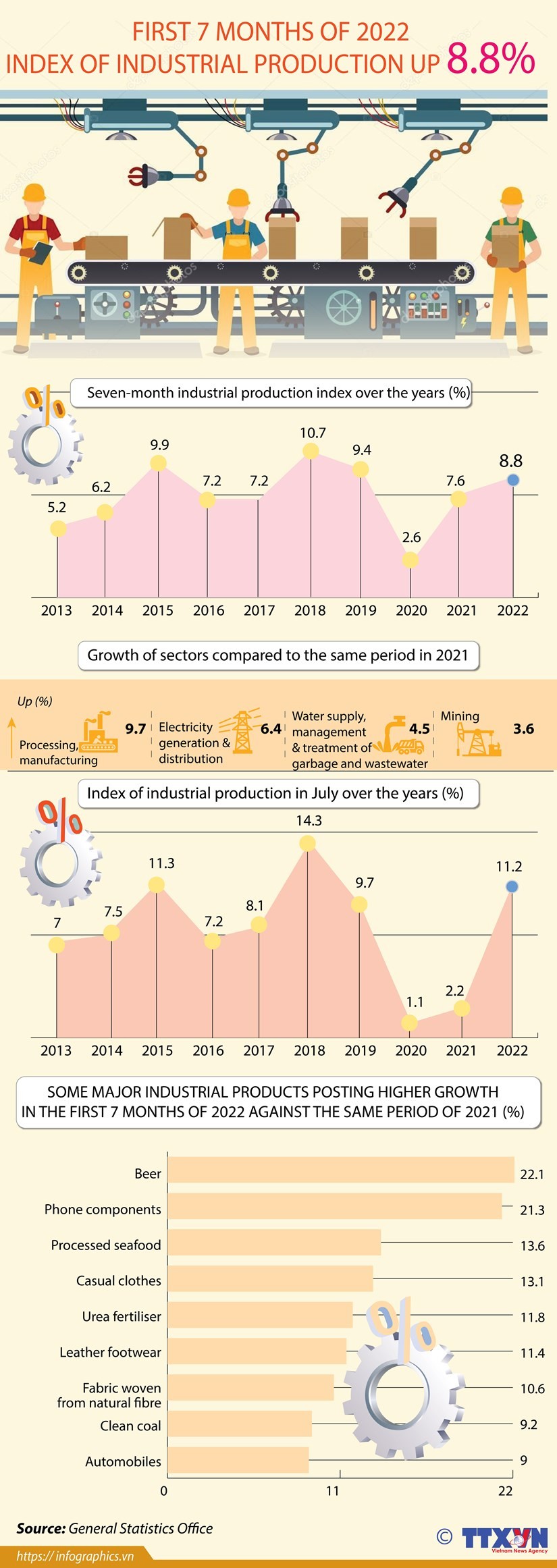 Industrial production index up 8.8 percent in first 7 months of 2022