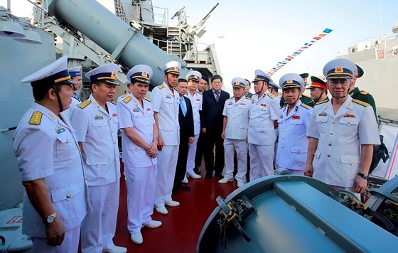 At the ceremony, the commanders and political commissars of the fourth Naval Region 4 handed over Vietnam traditional and military flags to soldiers of the two warships; officially put into operation of the 015 Tran Hung Dao and 016 Quang Trung to ready for combat.