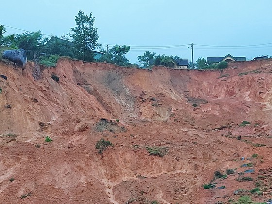 According to Chairman of the People’s Committee of Huong Tra Commune Mr. Ho Bao Xuyen, there have been many landslides in Tra Luong and Tra Linh villages, damaging ten houses.