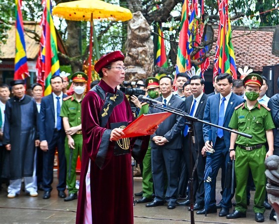 The ceremony took place at the Hung Temple special national historical site in the Northern province of Phu Tho on the death anniversary of Hung Kings (on the 10th of the third lunar month, falling on April 29 this year, with the participation of President Vo Van Thuong, Permanent Vice Chairman of the National Assembly Tran Thanh Man, Minister of Public Security General To Lam, Head of the General Department of Politics of the Vietnam People's Army Luong Cuong and other delegates.
