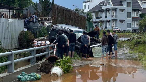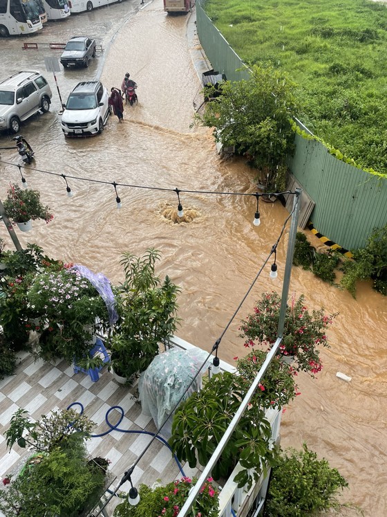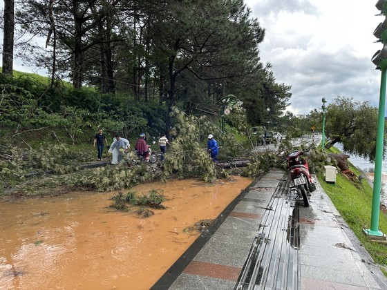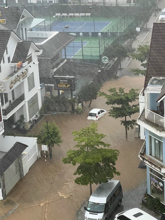 Tran Quoc Toan street around Xuan Huong Lake, the planning areas on Yersin and Mac Dinh Chi streets were flooded under 20-40 cm of rainwater.
