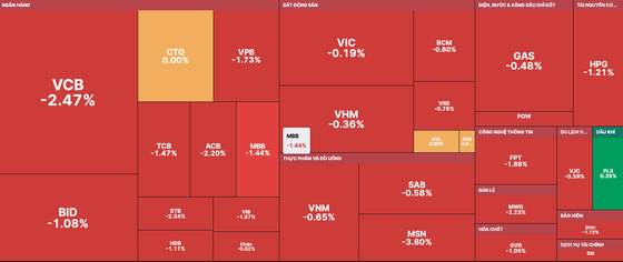 Other pillar stocks posting great losses were Hoa Phat Group (HPG), Vietnam Rubber Group (VRE), FPT Corporation (FPT), and Mobile World Investment Corporation (MWG). These stocks plummeted in a range of 1-2.23 percent.