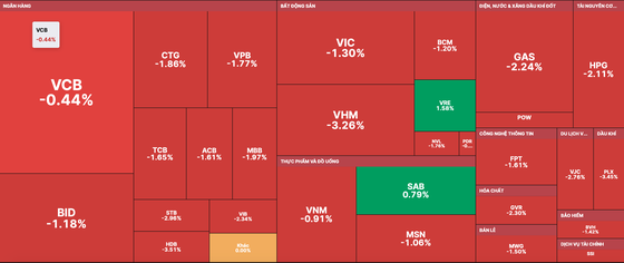 Cushioning some of the losses, Vincom Retail (VRE) and Sabeco (SAB) led the uptrend with gains of 1.58 percent and 0.79 percent, respectively.