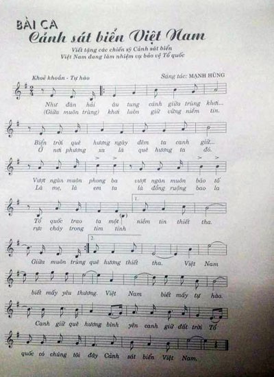 Canh sat bien Vietnam (Vietnam marine police) written by Nguyen Manh Hung, a lecturer at the Hanoi College of Art, has been recorded by him and his students to pay tribute to the Coast Guard who safeguard the country’s maritime security.