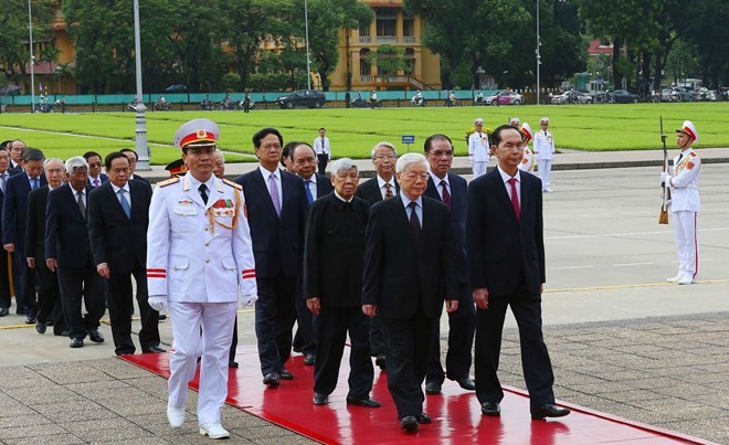 The delegation included Party General Secretary Nguyen Phu Trong, President Tran Dai Quang, Prime Minister Nguyen Xuan Phuc, National Assembly Chairwoman Nguyen Thi Kim Ngan, and President of the Vietnam Fatherland Front Central Committee Tran Thanh Man, along with a number of former Party, State and Government leaders.
