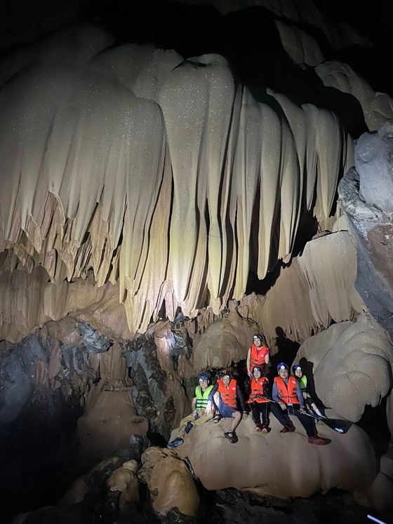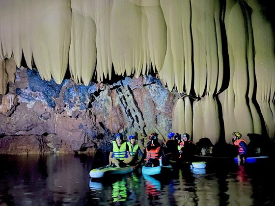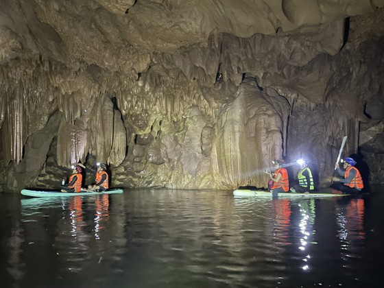 The new cave’s mouth in Truong Son Commune of Quang Ninh District includes a front door and a back door. The cave is more than 1.5km long. It takes about an hour to row rubber boats from the cave’s front door to the back door.