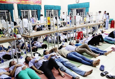 Over 200 workers at Shin Dong Company in Le Van Khuong Street in Ho Chi Minh City’s district 12 are being treated in the district’s hospital as they suffering from food poisoning symptoms.