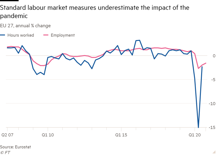 The problem of policy disguising underlying trends besets unemployment statistics, especially in Europe. The US allowed companies to lay off workers and paid them generous benefits while unemployed, while European countries generally chose to pay companies to keep their workers on the books.